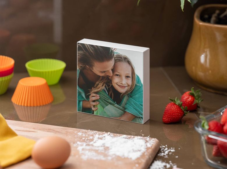 Für Freunde: Schenk deiner besten Freundin oder deinem Freund einen Foto-Acrylblock mit einem lustigen Partybild von euch beiden oder einen Holzblock mit einem Foto von einer Kindheitserinnerung.