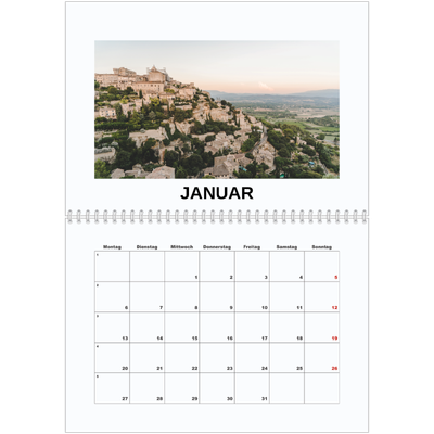 Kein Grund, bis zum Januar zu warten – du kannst deinen Kalender im Querformat mit jedem beliebigen Monat beginnen. Perfekt für Schulkalender, Geschäftskalender und mehr.