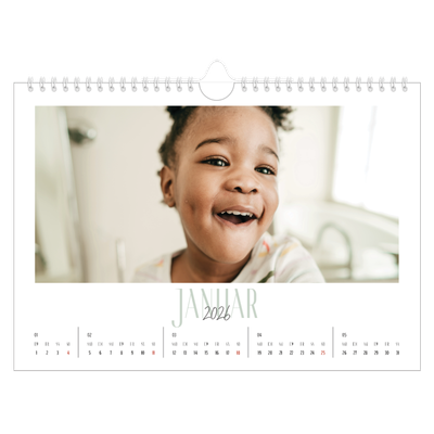 Kein Grund, bis zum Januar zu warten – du kannst deinen Kalender im Querformat mit jedem beliebigen Monat beginnen. Perfekt für Schulkalender, Geschäftskalender und mehr.