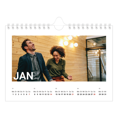 Kein Grund, bis zum Januar zu warten – du kannst deinen Kalender im Querformat mit jedem beliebigen Monat beginnen. Perfekt für Schulkalender, Geschäftskalender und mehr.